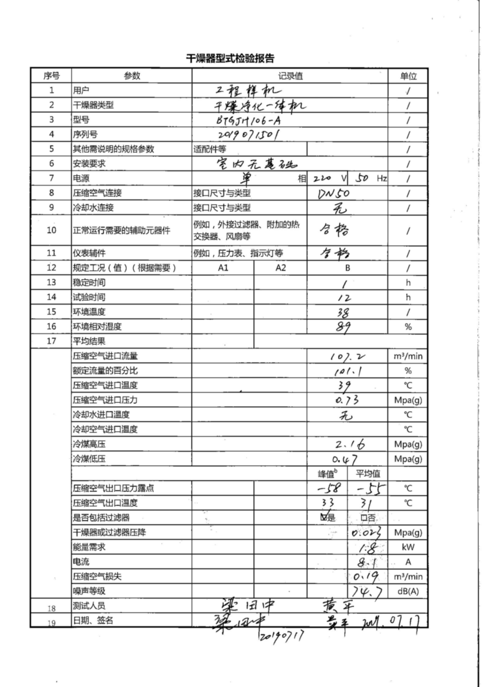 2019年6月,貝騰科技完成了干燥凈化一體機(jī)工程樣機(jī)的研制,2019年7月17日完成干燥凈化一體機(jī)工程樣機(jī)型式檢驗(yàn),各項(xiàng)技術(shù)指標(biāo)完全滿足《干燥凈化一體機(jī)技術(shù)規(guī)范》的要求,產(chǎn)品定型,項(xiàng)目研發(fā)取得成功。
