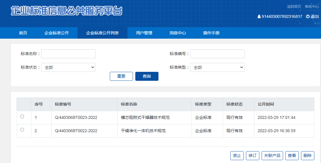 深圳市貝騰科技有限公司(簡稱貝騰科技)在國家標(biāo)準(zhǔn)企業(yè)信息公共平臺發(fā)布兩項(xiàng)企業(yè)標(biāo)準(zhǔn),分別為《干燥凈化一體機(jī)技術(shù)規(guī)范》(2019年7月開始試行)和《模芯吸附式干燥器技術(shù)規(guī)范》(2015年3月開始試行),貝騰科技將于2022年04月01日正式實(shí)施。