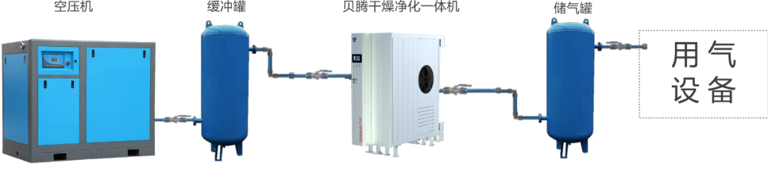 針對(duì)壓縮空氣品質(zhì)達(dá)標(biāo)這一問題,貝騰做了完美答卷。貝騰研發(fā)的壓縮空氣干燥凈化一體機(jī)集成了制冷系統(tǒng)、吸附干燥系統(tǒng)、油水分離系統(tǒng)、高效精密過濾系統(tǒng),可有效去除壓縮空氣中的油分、水分、及顆粒雜質(zhì),壓力露點(diǎn)可達(dá)-70℃以下,不僅可有效解決壓縮空氣中的深度除水問題,還節(jié)省了壓縮空氣系統(tǒng)的安裝成本,綜合能耗也大大降低,是噴涂行業(yè)的理想首選。