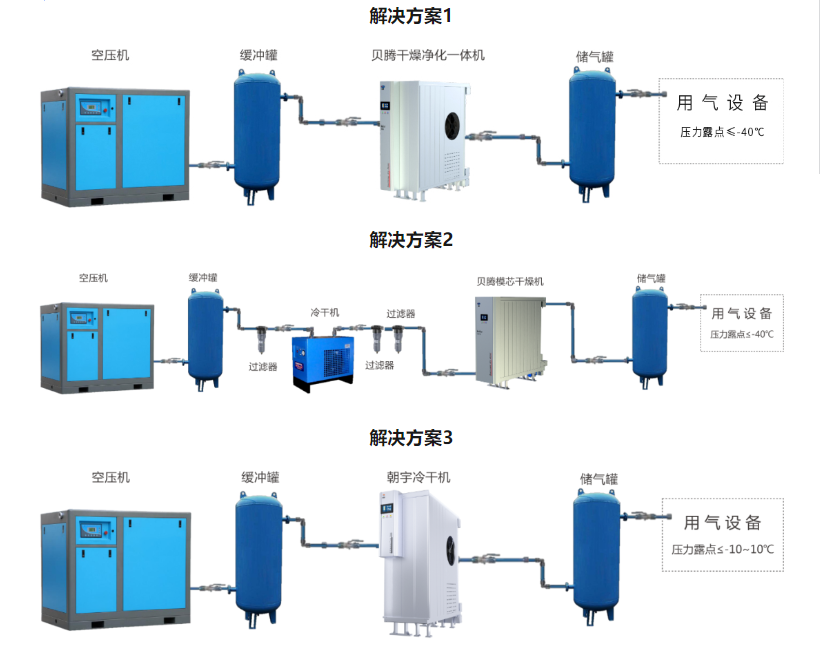 用于氣動(dòng)控制閥門、儀表、電磁閥、氣缸等。其用氣壓力、用氣量及用氣時(shí)間持續(xù)穩(wěn)定。儀表用氣需要的壓縮空氣品質(zhì)要求為: