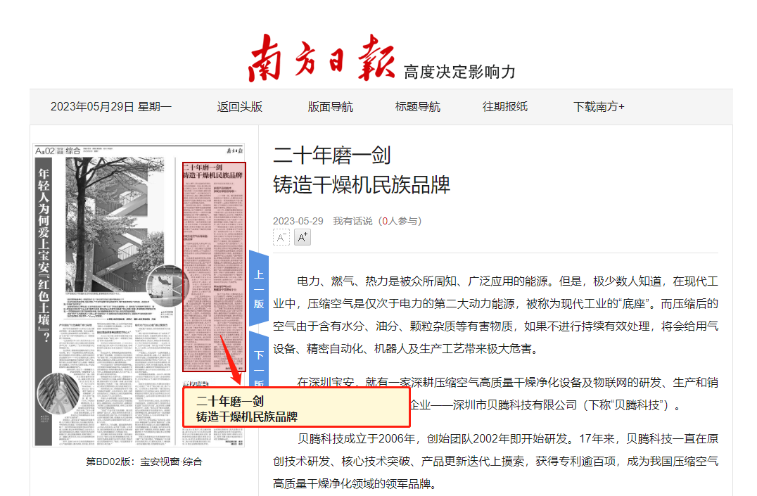 在深圳寶安,就有一家深耕壓縮空氣高質(zhì)量干燥凈化設(shè)備及物聯(lián)網(wǎng)的研發(fā)、生產(chǎn)和銷售于一體的國(guó)家級(jí)高新技術(shù)企業(yè)——深圳市貝騰科技有限公司(以下簡(jiǎn)稱“貝騰科技”)。