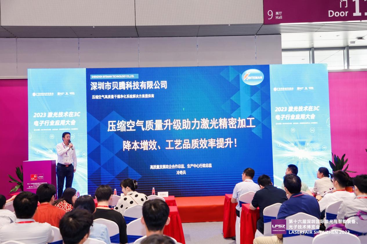 貝騰科技作為國家級高新技術(shù)企業(yè),深圳市政府、寶安區(qū)政府重點(diǎn)扶持企業(yè),壓縮空氣后處理領(lǐng)軍企業(yè),受邀參加該盛會并作主題報告。會上,貝騰科技高質(zhì)量發(fā)展政企合作總監(jiān)冷奇兵先生就《壓縮空氣質(zhì)量升級幫助激光精密加工降本增效、工藝品質(zhì)效率提升》發(fā)表主題演講。演講內(nèi)容層層遞進(jìn)、深入淺出,會議現(xiàn)場反響熱烈,引發(fā)了業(yè)內(nèi)人士的廣泛共鳴。