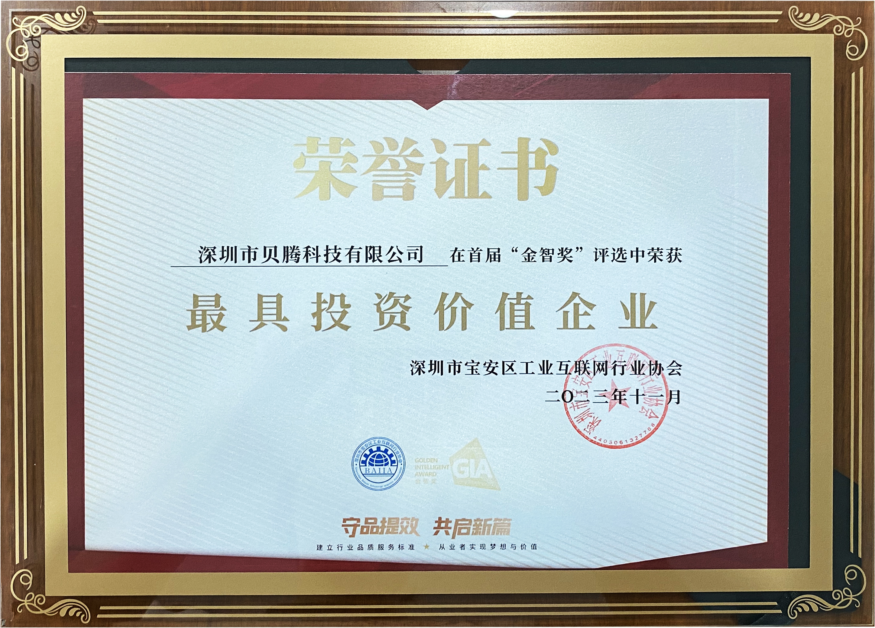 “金智獎”由深圳市寶安區(qū)工業(yè)互聯(lián)網(wǎng)行業(yè)協(xié)會頒發(fā),旨在發(fā)現(xiàn)上一年度業(yè)績優(yōu)秀、為工業(yè)制造業(yè)的發(fā)展貢獻顯著、具有崇高使命和社會責任感的公司,是工業(yè)互聯(lián)網(wǎng)領域極具影響力的獎項之一。本次評選,貝騰科技與其他各行各業(yè)的領先企業(yè),從眾多入圍的企業(yè)中脫穎而出,載譽而歸。