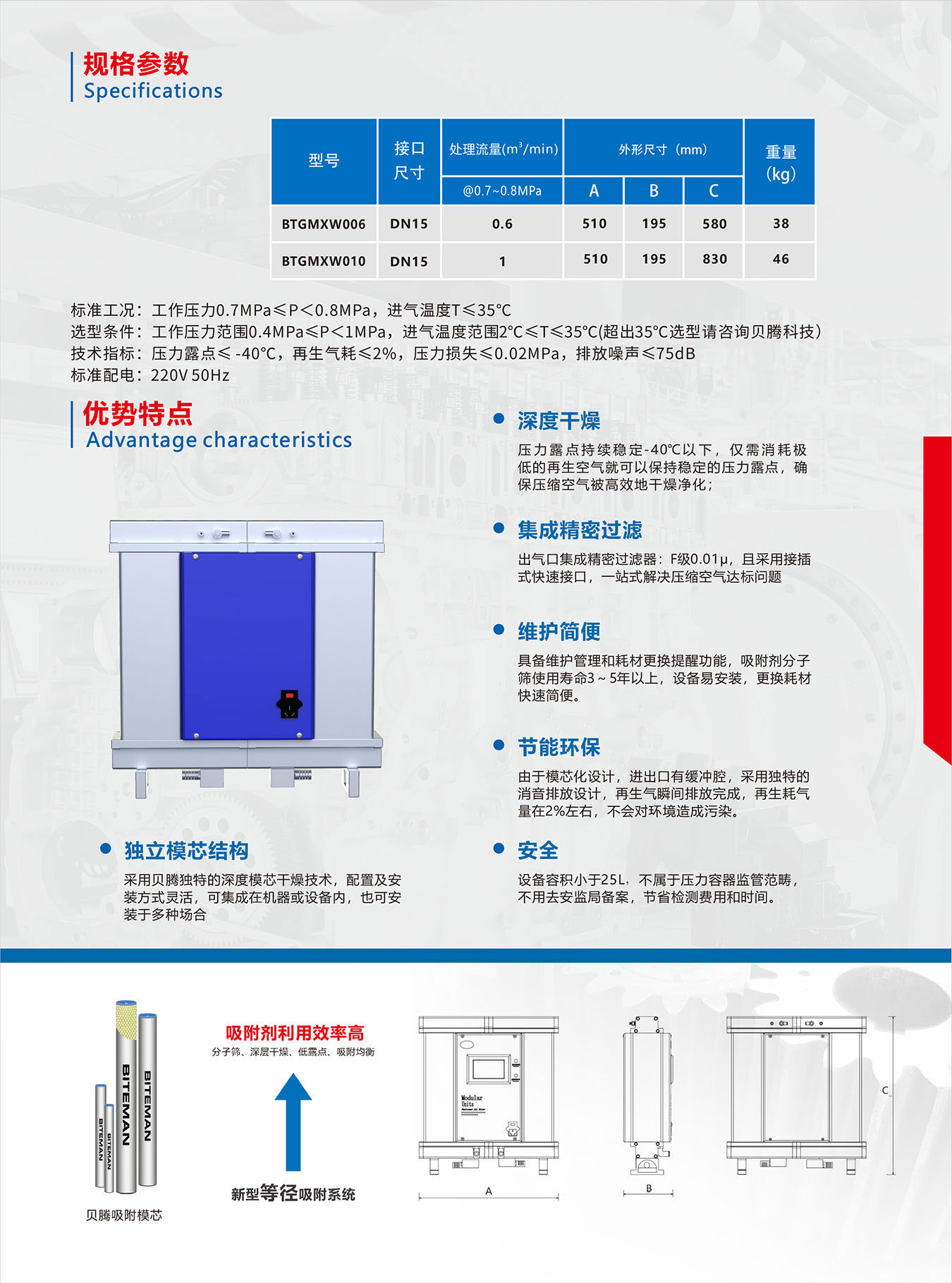 采用貝騰獨(dú)特的深度模芯干燥技術(shù),配置及安裝方式靈活,可集成在機(jī)器或設(shè)備內(nèi),也可安裝于多種場(chǎng)合。