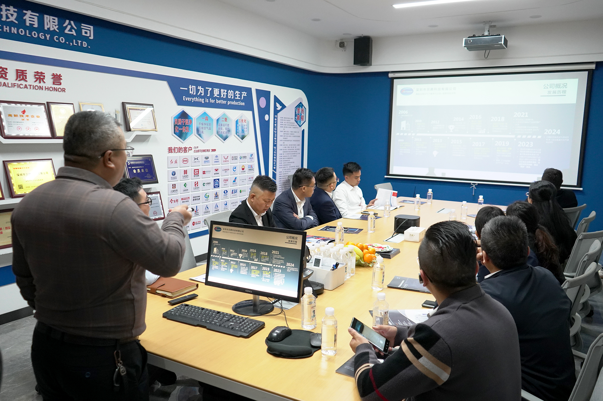 ? ? ? 3月29日,貴州銅仁商會楊松會長率考察團(tuán)專程到訪深圳貝騰科技有限公司。公司高層管理團(tuán)隊(duì)熱情接待了考察團(tuán)一行,雙方就深化科技合作、促進(jìn)產(chǎn)業(yè)升級等議題展開深入交流。